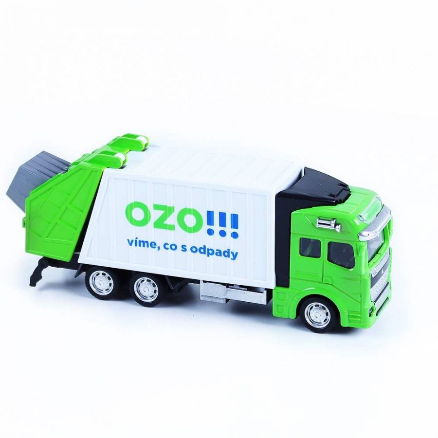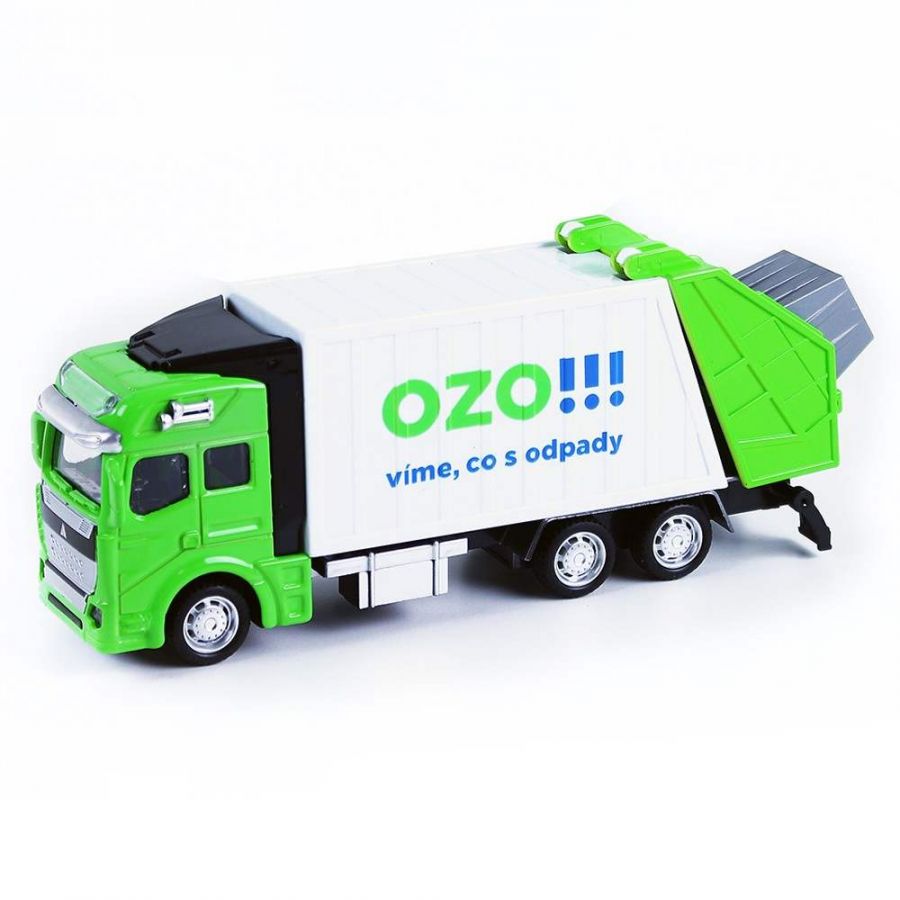 Popelářské kovové autíčko s plastovou korbou, délka autíčka je 19 cm. Korba má v zadní části otevírací dveře a lze ji odklopit. Auto je na zpětný setrvačník. Obohať svou sbírku o tento parádní kousek!