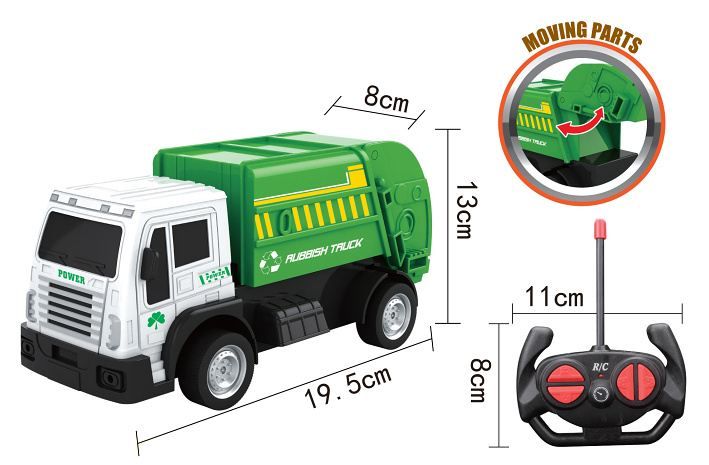 S tímto parádním RC popelářským autem se můžeš stát popelářem kdykoliv budeš chtít. S tvojí pomocí budou tvoje ulice a celé město dokonalé. Zadní část vozu je odklápěcí. Svítící přední světla.