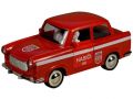 ve červeném designu aut retro hasičů s pohonem na setrvačník. Auto po