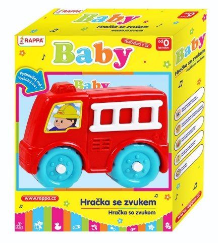 Barevné hasičské auto se zvukem a světelným efektem. Stisknutím libovolných tlačítek na kolech se ozvou reálné zvuky a poté začne hrát melodie. Autíčko vyžaduje 2 ks baterií typu AA, které jsou součástí balení. Tato hračka rozvíjí sluch, hmat a zrak děťátka.