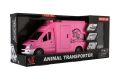 Auto přepravník zvířat plast 28cm s koněm na setrvačník se světlem se zvukem růžové krabic