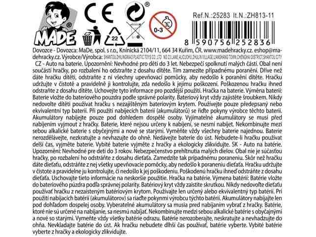Toto autíčko je vybaveno bateriemi a je ideální pro kluky od 3 let. S rozměry 21,5x11,5x7,5 cm se snadno vejde do ruky malého závodníka. Díky otevřenému boxu je obsah snadno dostupný a hravé zážitky s autíčkem mohou začít. V balení jsou 3 baterie typu AG13, takže hračka je připravena k okamžitému použití. Autíčko je vyrobeno z kvalitního plastu a je k dispozici ve 2 různých barvách. S tímto autíčkem se kluci budou moci skvěle bavit a rozvíjet svou motoriku a fantazii.