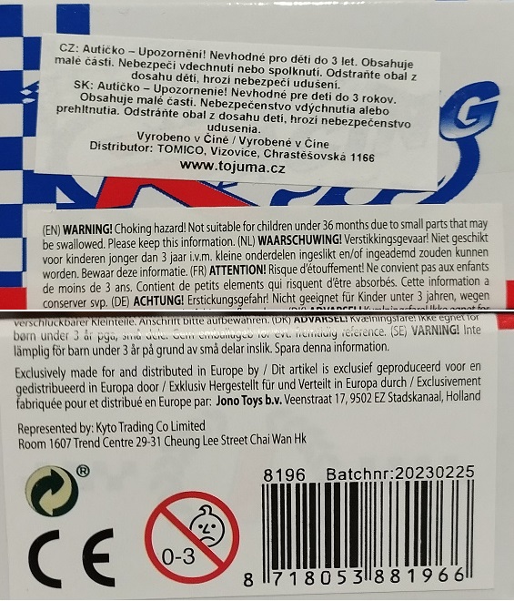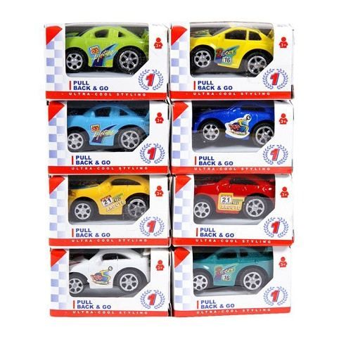 Auto pull-back 6 cm, baleno v krabičce, 8 druhů. Nelze vybrat druh, dodáváme dle skladové dostupnosti.