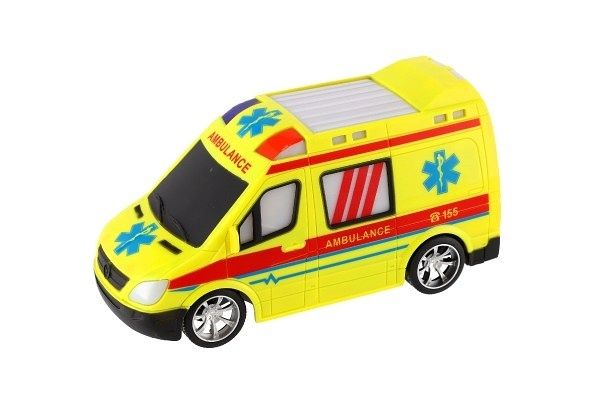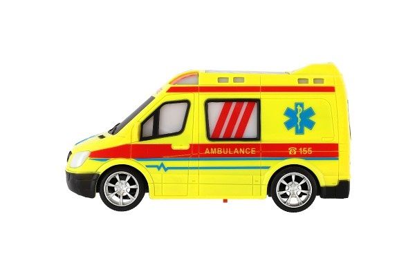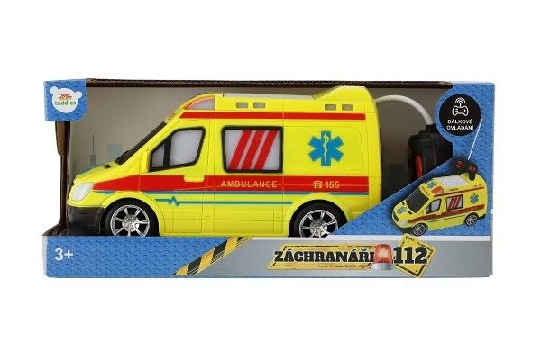 Auto RC ambulance plast 20cm na dálkové ovládání 27MHz na baterie se světlem v krabici