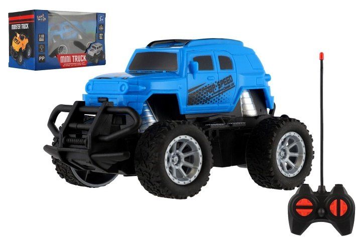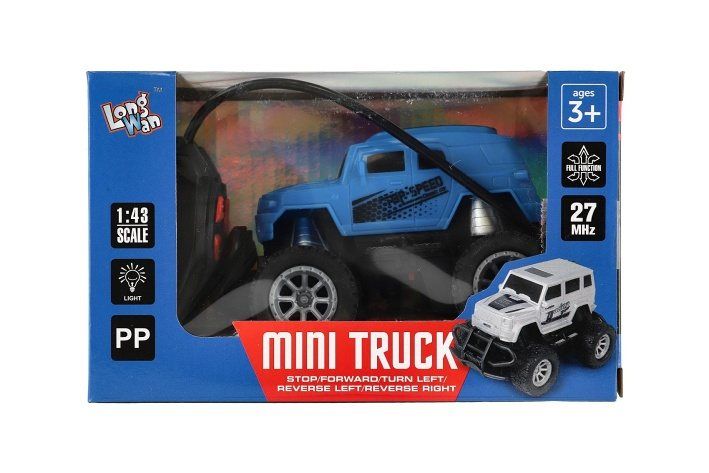 Závodní zážitek v mini formátu! Tento RC mini truck v modré barvě přináší spoustu zábavy. Funguje na frekvenci 27MHz. Ideální auto na závody v interéru i venku. Auto na baterie 4 x AA, které nejsou součástí balení.