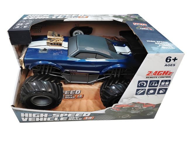 Auto RC na dálkové ovládání. Rozměry 43,5x29,5x27 cm. Pistolový ovladač. Frekvence 2. 4GHz. Světelné efekty. Bateriový pack 7. 4V 800mAh do auta součástí, 2xAA do ovladače nejsou součástí. USB kabel součástí. Provoz 15-20 min, nabíjení 180 min, dosah 15-20 m. Přepínač ON/OFF na spodní straně auta a na ovladači. Tlačítko na ovladači.