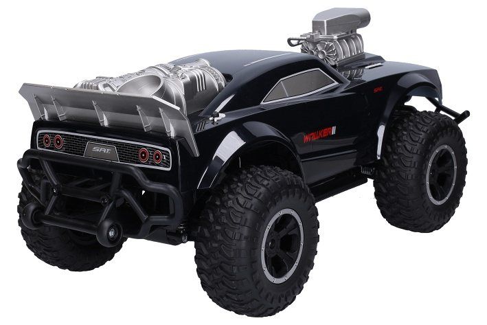 Auto RC na dálkové ovládání. Rozměry 48x24x18 cm. Frekvence 2. 4 GHz. Pistolový ovladač. Bateriový pack 7. 4V 500mAh pro auto součástí, 2xAA pro ovladač není součástí. Přepínač ON/OFF na spodní straně auta a na ovladači. USB kabel součástí. 2 varianty - černá, šedá.