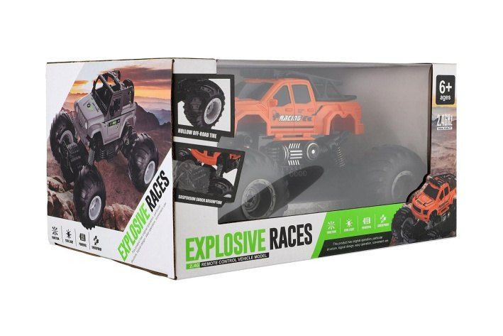 Auto RC pick up Off road terénní plast 23cm 2,4GHZ na baterie se světlem oranžový v krab.