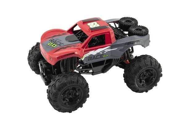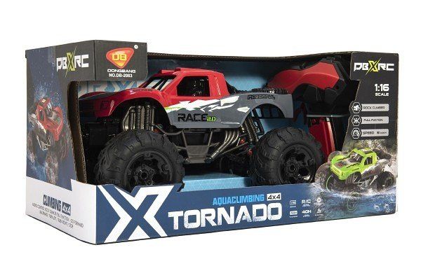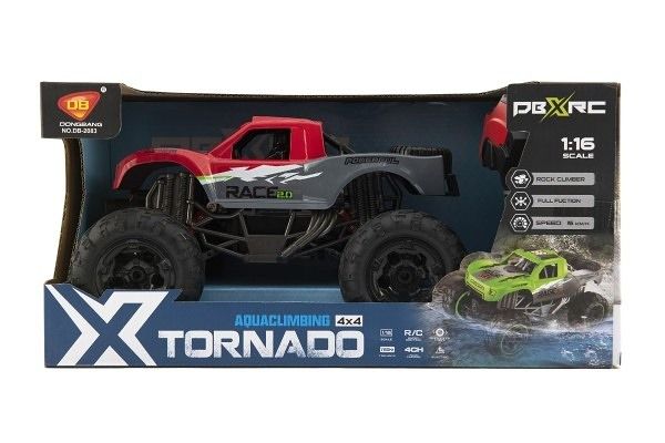 Červené auto truck na ovládání zvládá díky své voděoodolnosti jezdit vodou. Pohon 4x4. Auto dosahuje rychlosti až 15 km/h. Dobíjení auta pomocí USB kabelu. Frekvence 2,4GHz, plně funkční proporcionální rádiový řídicí systém. Měřítko 1:16.