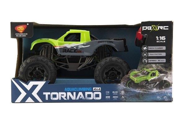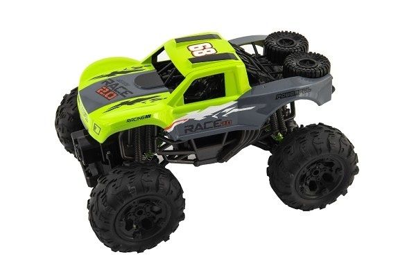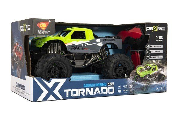 Zelené auto truck na ovládání zvládá díky své voděoodolnosti jezdit vodou. Pohon 4x4. Auto dosahuje rychlosti až 15 km/h. Dobíjení auta pomocí USB kabelu. Frekvence 2,4GHz, plně funkční proporcionální rádiový řídicí systém. Měřítko 1:16.