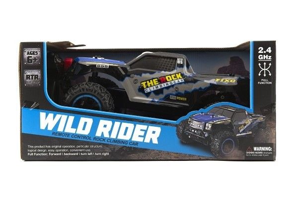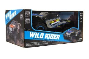 Auto RC terénní modré 39cm plast 2,4GHz na baterie + dobíjecí pack v krabici 46x21x27cm