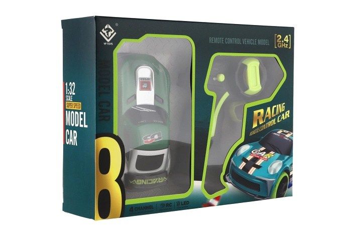 Auto RC závodní 2,4GHz plast 12cm na baterie se světlem zelené v krabici 23x17x5,5cm