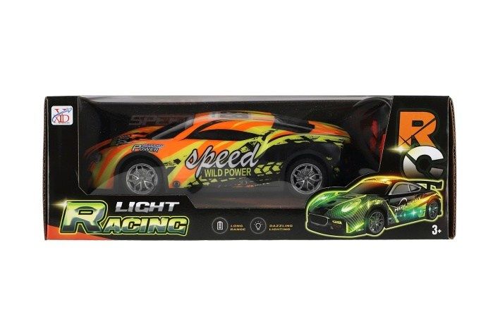 Auto RC závodní 27MHz plast 20cm na baterie se světlem 3 barvy v krabici 27x10x13cm