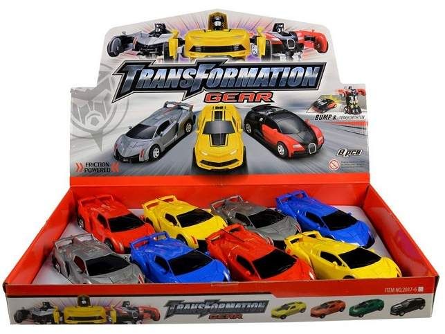 Auto - robot na setrvačník, 14 cm, 8 ks v boxu, 39 x 26 cm. Dvě hračky v jenom. Během hry si můžeš vybrat s čím si budeš hrát. Hračka je určena pro děti 3+. Rozměr hračky je 4 x 14 x 6 cm. Materiál hračky je plast. Balení hračky je display box. Produkt je určený pro kluky. Baterie nejsou součástí balení.