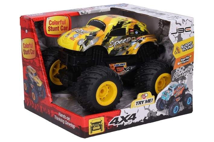 Auto. Rozměry 19x17x13 cm. Na setrvačník. Světelné a zvukové efekty. 4xAG13 baterie součástí. 2 varianty - zelená, žlutá.
