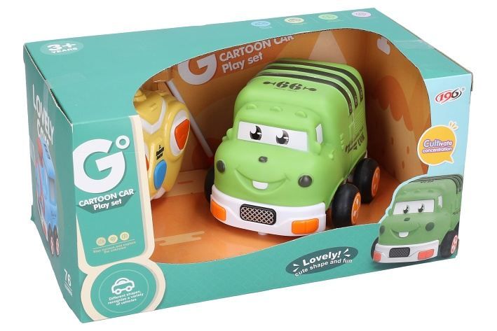 Auto s obličejem, RC na dálkové ovládání. Velikost 13 cm. Tlačítka na ovladači - pohyb dopředu, dozadu, zvukové efekty. Frekvence 2,4GHz. Auto - 3xAA (nejsou součástí), Ovladač - 2xAA (nejsou součástí).