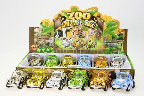 Kovová autíčka se zvířecími potisky, samovolný chod. Rozměry auta cca 8 x 4,5 x 5 cm. Rozměry balení cca 40 x 20,5 cm.