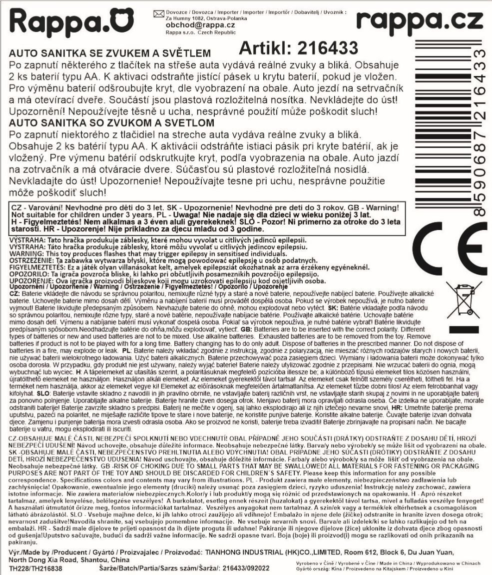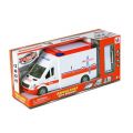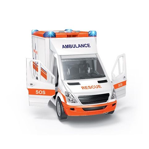 Auto sanitka s odnímatelnou střechou. Délka auta 27 cm, všechny dveře se dají otevřít. Světelné a zvukové efekty, které fungují po vložení 2xAA baterií, které nejsou součástí balení. Součástí sady jsou také nosítka.