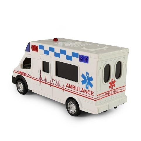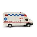 Auto sanitka po stlačení tlačítka na střeše vozu vydává reálné zvuky a bliká. Autíčko v délce 18 cm je na baterie, které jsou jeho součástí.