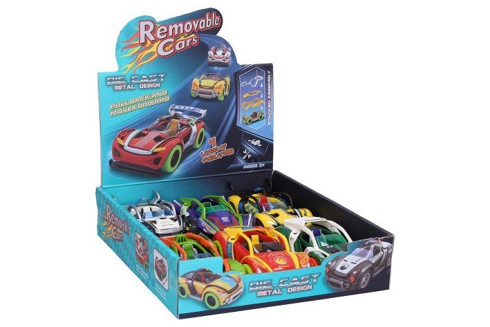 Auto sestavitelné. Rozměry 12x7x4,5 cm. Na zpětné natažení. 6 ks display box. 12 variant.