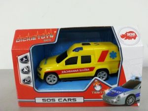 Auto složek záchranných sborů na setrvačník se světelným a zvukovým efektem. Měřítko 1:36, délka 15 cm. Česká verze. 3 druhy: ambulance, hasičské nebo policejní auto.