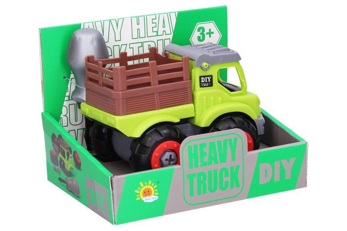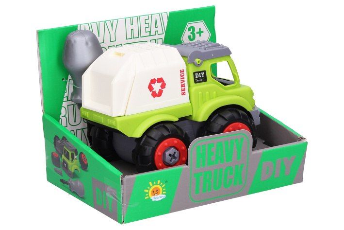 Auto šroubovací. Rozměry 13x9x9 cm. Volná kola. Obsahuje auto, šroubovák. 2 varianty - nákladní, popelářské.