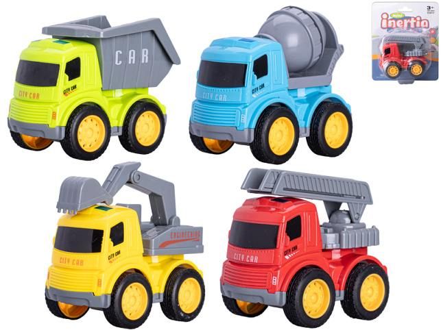 Auto stavební 9cm na setrvačník 4druhy na kartě