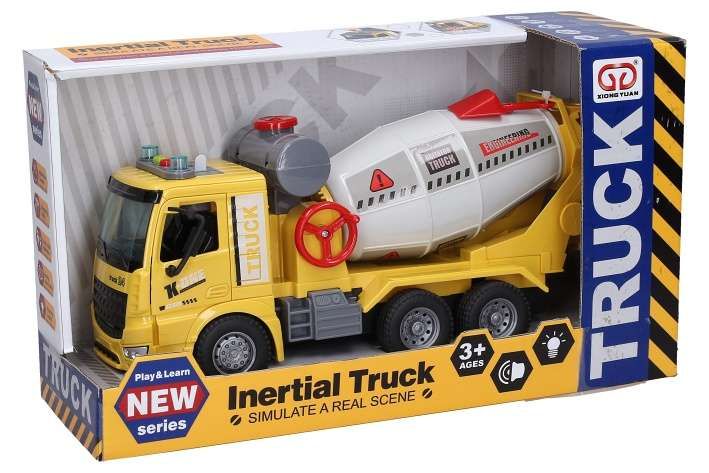Auto stavební domíchávač na setrvačník s efekty. Velikost 31 cm. Vydává světelné a zvukové efekty. Aktivace tlačítky na střeše (1 tlačítko - zvuk motoru, zvuk míchání, 2 tlačítko - zvuk couvání, zvuk troubení. Baterie 3xAG13 (1. 5V), součástí balení.