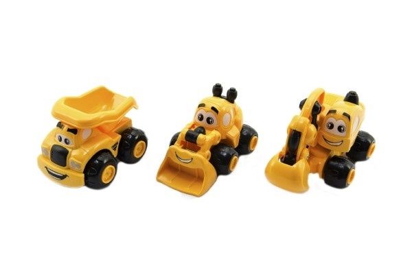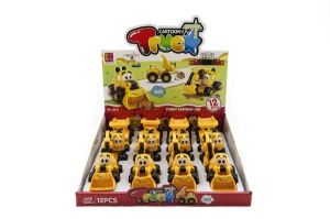 Auto stavební pro nejmenší plast 9cm asst 3 druhy na zpětné natažení 12ks v boxu 12m+