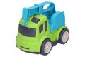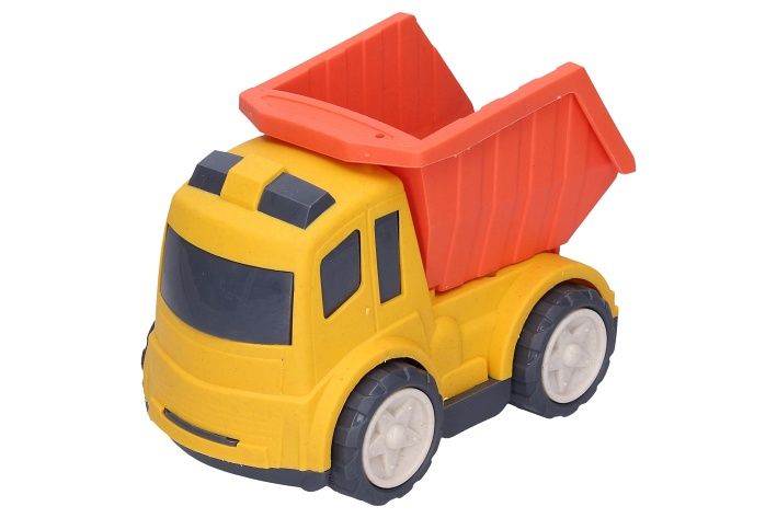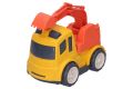 Auto stavební stroje. Velikost 17 cm. 4 varianty - bagr, jeřáb, domíchávač, sklápěč. 2 barevné varianty - modrá, červená. Volná kola.