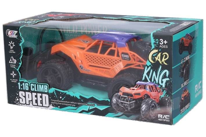Auto terénní RC na dálkové ovládání. Rozměry 24x15x11 cm. Frekvence 27 MHz. Světelné efekty. 4xAA baterie do auta a 2xAA baterie do ovladače nejsou součástí. Přepínač ON/OFF na spodní straně auta.