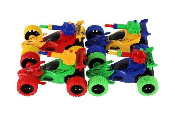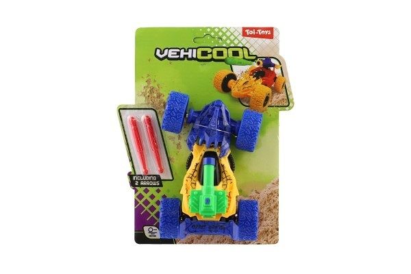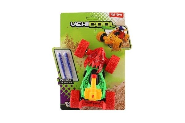 Auto terénní střílecí plast 15cm + 2 šipky na setrvačník 4 barvy na kartě