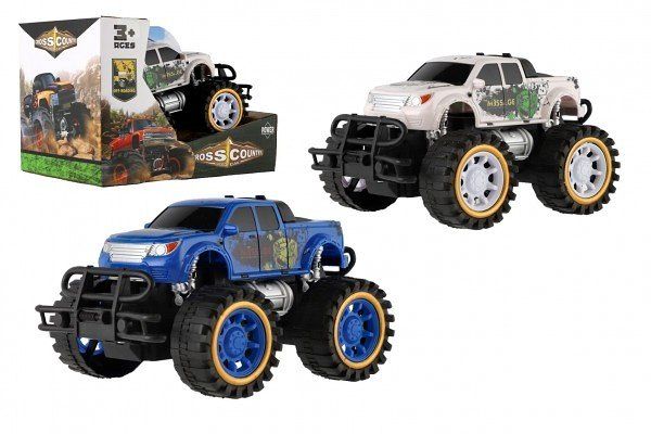 Auto terénní velká kola plast 18cm na setrvačník 2 barvy v krabici 20x14x14cm