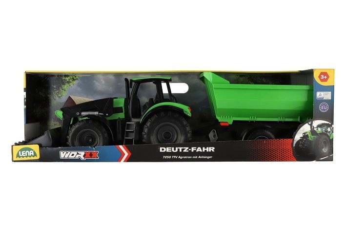 Auto Traktor Deutz-Fahr s přívěsem Worxx plast 75cm 1:15 v krabici 76x22x19cm