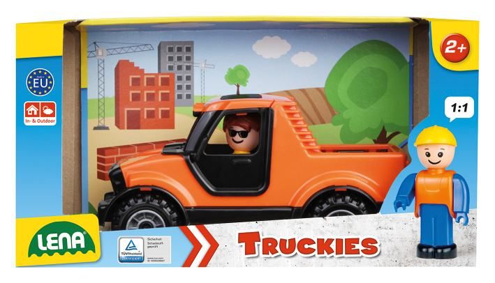 Auto Truckies Pickup z kvalitního plastu a velmi pevnou stavbou. Plně mechanicky funkční. Obsahuje odklopitelnou kabinu s aktivním panáčkem. V ozdobné krabici.