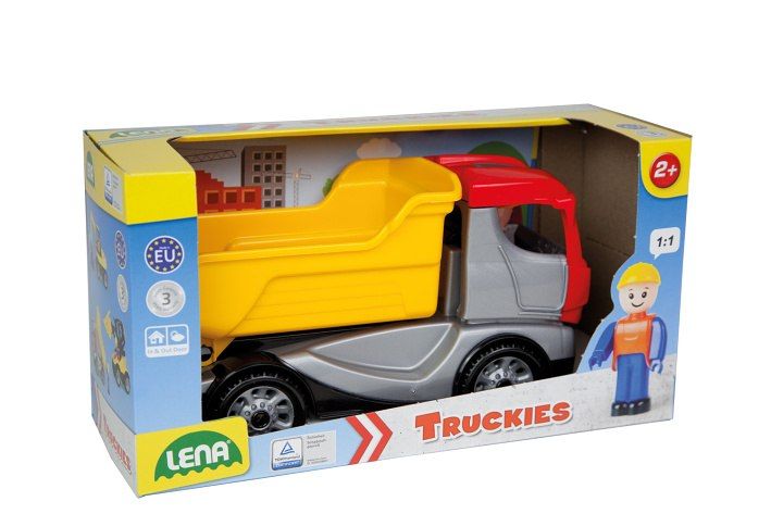 Truckies sklápěč z kvalitního plastu a velmi pevnou stavbou. Plně mechanicky funkční. Obsahuje odklopitelnou kabinu s aktivním panáčkem.