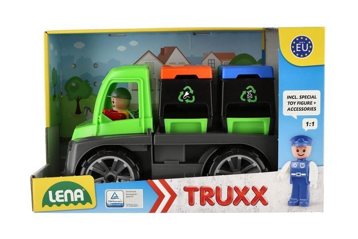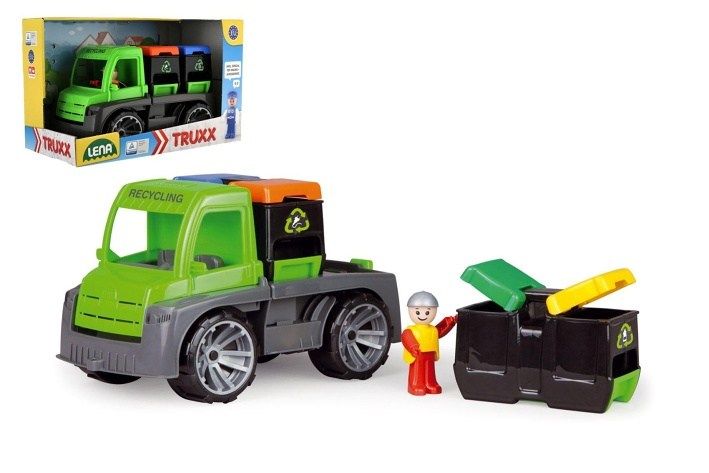 Auto je plně mechanicky funkční s odklopitelnou kabinou a aktivním panáčkem. Součástí jsou 2 dvojité kontejnery s pojistkou proti samovolnému oddělování od auta, každý kontejner má odklopitelné víko a spodní výsep, kvalitní plast s velmi pevnou stavbou. Velikost auta je 28 cm.