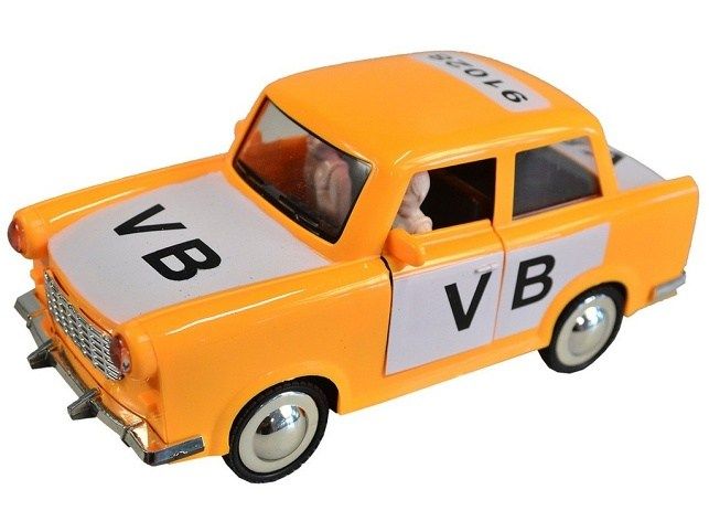 VéBéčko. Plastové auto ve žlutém designu aut Veřejné Bezpečnosti