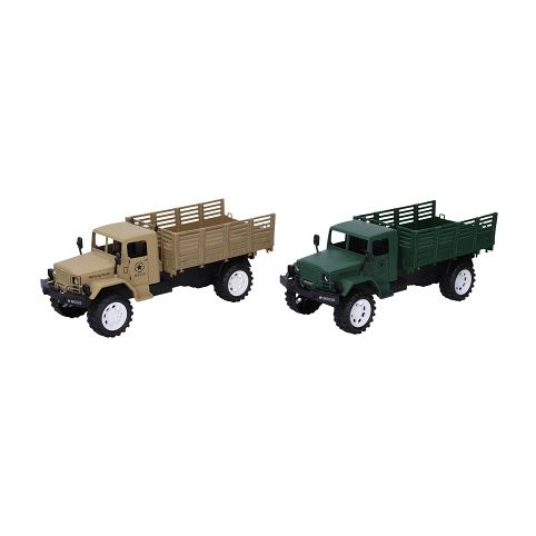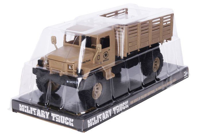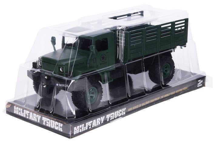 Auto s korbou určené k přepravě vojáků na různá cvičení nesmí chybět v žádném útvaru! Pořiď si autíčko a rozšiř svou armádní výbavu! Vojenské auto jezdí na setrvačník.