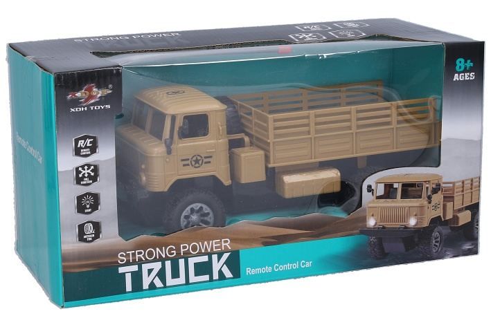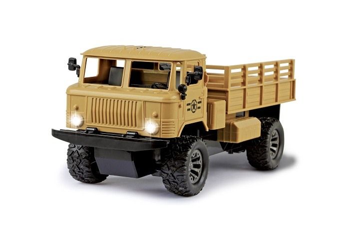 Auto vojenské RC na dálkové ovládání. Rozměry 25x12x13 cm. Frekvence 27 nebo 40MHz. Světelné efekty. 3. 7V bateriový pack do auta součástí, 2xAA do ovladače nejsou součástí. USB kabel součástí. Přepínač ON/OFF na spodní straně auta.