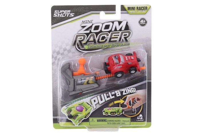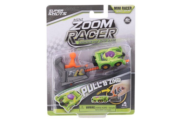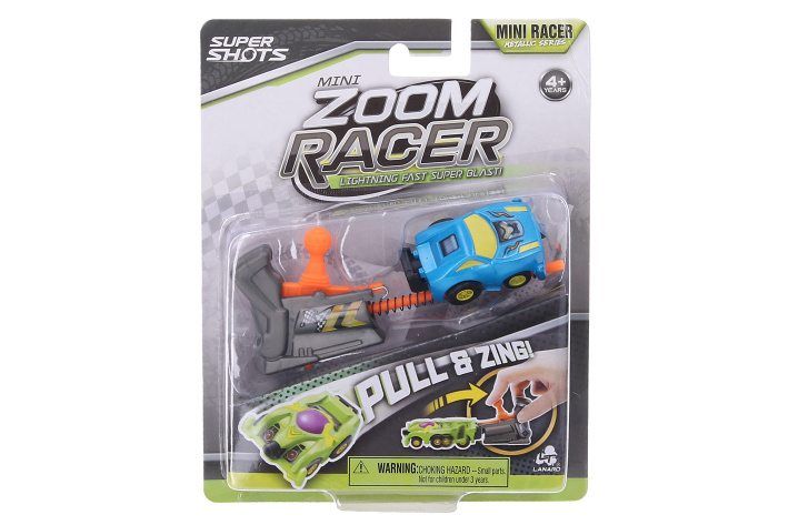 Auto vystřelovací závoďák Mini Zoom. Velikost 5 cm. 4 varianty - modrá, červená, žlutá, zelená. Vystřelovací mechanismus, natažení pružinky. Obrázkový návod na obalu.