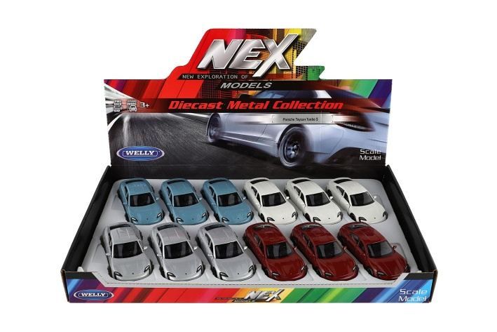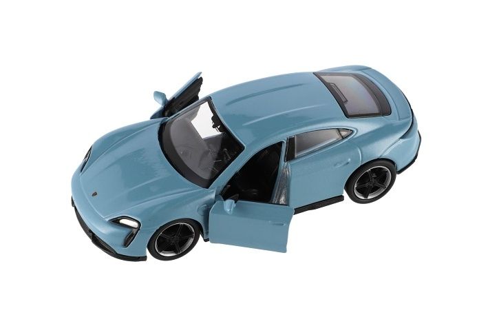Model osobního auta s otevíracími dveřmi. Luxusní vůz je vyroben z kovu a má plastové doplňky a je na zpětné natažení. Vozidlo je věrnou kopií reálných aut značky Porsche.