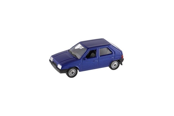 Auto Škoda v měřítku 1:60, vyrobené z kovových a plastových dílů. Baleno v papírové krabičce s fóliovým průhledem, obal Škoda models.