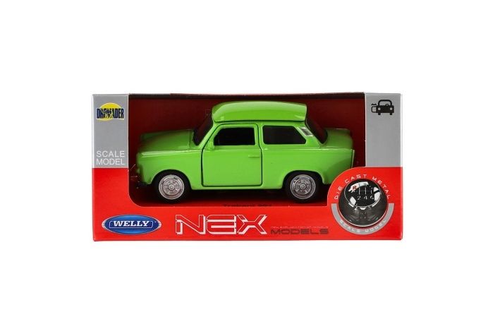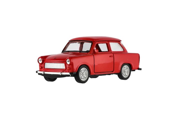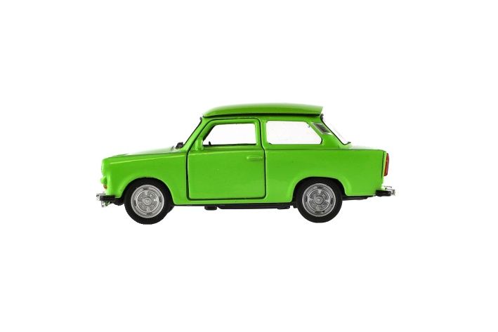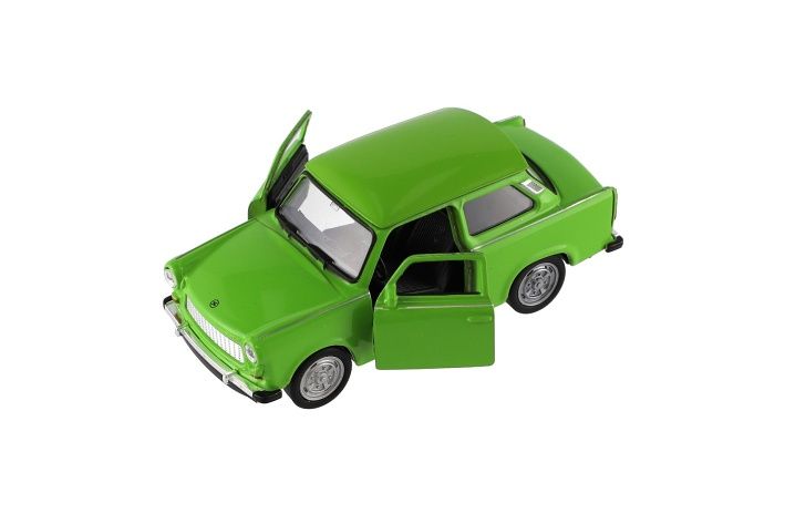 Model osobního auta na volný chod s otevíracími dveřmi. Vůz je v měřítku 1:34 a je vyrobeno z kovu s plastovými doplňky. Vozidlo je věrnou kopií reálných aut Trabant.