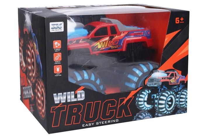 Auto Wild Truck se svítícími koly RC na dálkové ovládání. Rozměry 26,5x22x21 cm. Frekvence 2. 4GHz. Svítící kola a motor - levým a pravým předním tlačítkem na ovladači. 7. 4V 500mAh bateriový pack do auta součástí, 2xAA do ovladače nejsou součástí. USB kabel součástí. Přepínač ON/OFF na boční straně auta, tlačítko ON/OFF na ovladači.