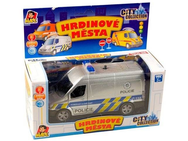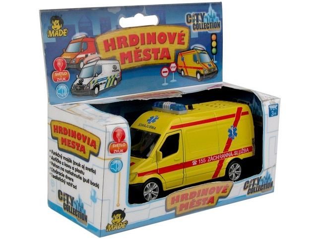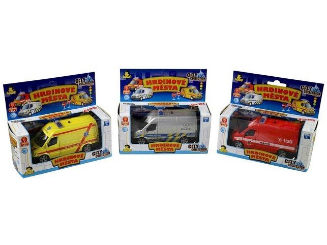 Nová série autíček "Hrdinové Města" z řady City Collection. Auto záchranářské na 2 baterie typu LR-41. Autíčko je na zpětné natažení. Auto svítí, vydává zvuky.Nabízené varianty: sanitka, policie, hasiči.Cena je uvedena za 1 kus.** Zvolenou variantu napište prosím do poznámky k objednávce. Pokud Vámi vybraná varianta/barva nebude skladem, budeme Vás co nejrychleji informovat. Pokud nevyberete žádnou variantu, zasíláme náhodně dle skladové dostupnosti.
