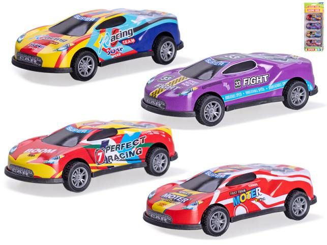 Auto závodní 8,5cm kov na zpětný chod 4ks v krabičce