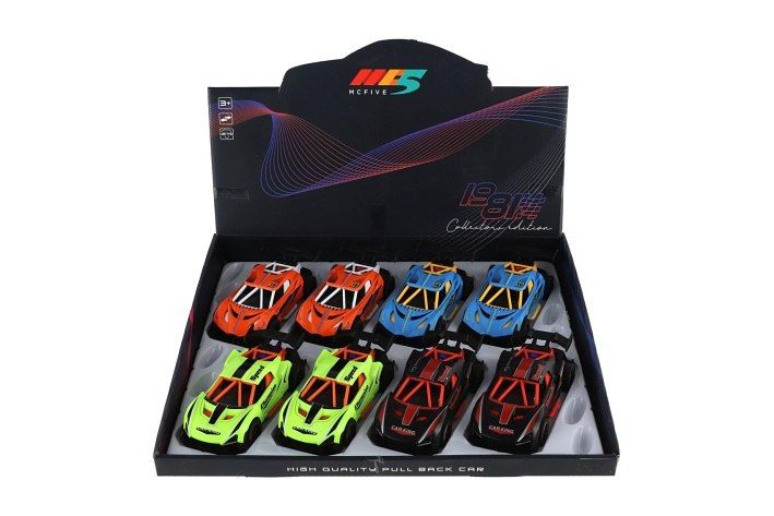 Připravit, pozor, start! Stylové závodní autíčko z kovu a plastu s funkcí zpětného natažení vyrazí vpřed jako blesk. Stačí natáhnout dozadu a pustit! Ideální pro malé závodníky doma i na cestách.