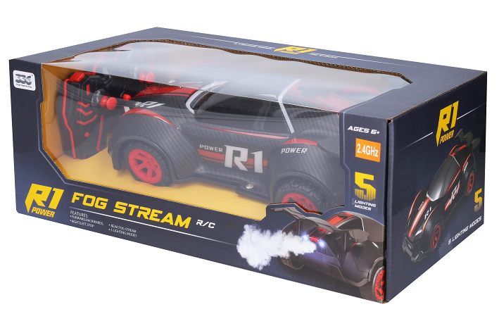 Auto závodní RC. Rozměry 28x16x8 cm. Světelné a kouřové efekty. 5 světelných módů. Frekvence 2. 4 GHz. Rychlost 12 km/h. Bateriový pack 3. 7V 500mah do auta součástí, 2xAA baterie do ovladače nejsou součástí. USB kabel součástí. Nabíjení 2 h. Provozní doba 25 min. Dosah 25 m. Přepínač ON/OFF na spodní straně auta. ON/OFF tlačítko mezi páčkami na ovladači. Levé tlačítko na ovladači - kouřové efekty. Pravé tlačítko na ovladači - přepínání světelných módů. Nádržka na vodu na střeše auta. Nádobka na vodu součástí.
