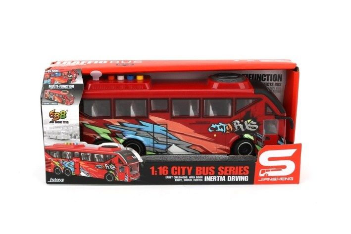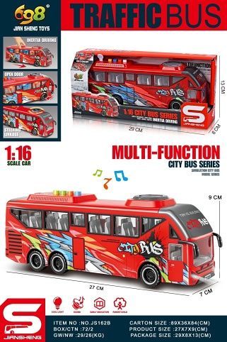 Autobus je v měřítku 1:16 v červené barvě. Autobus je svými rozměry vhodný pro zábavu v interiérech. Na baterie: 3x LR44 (jsou součástí balení)